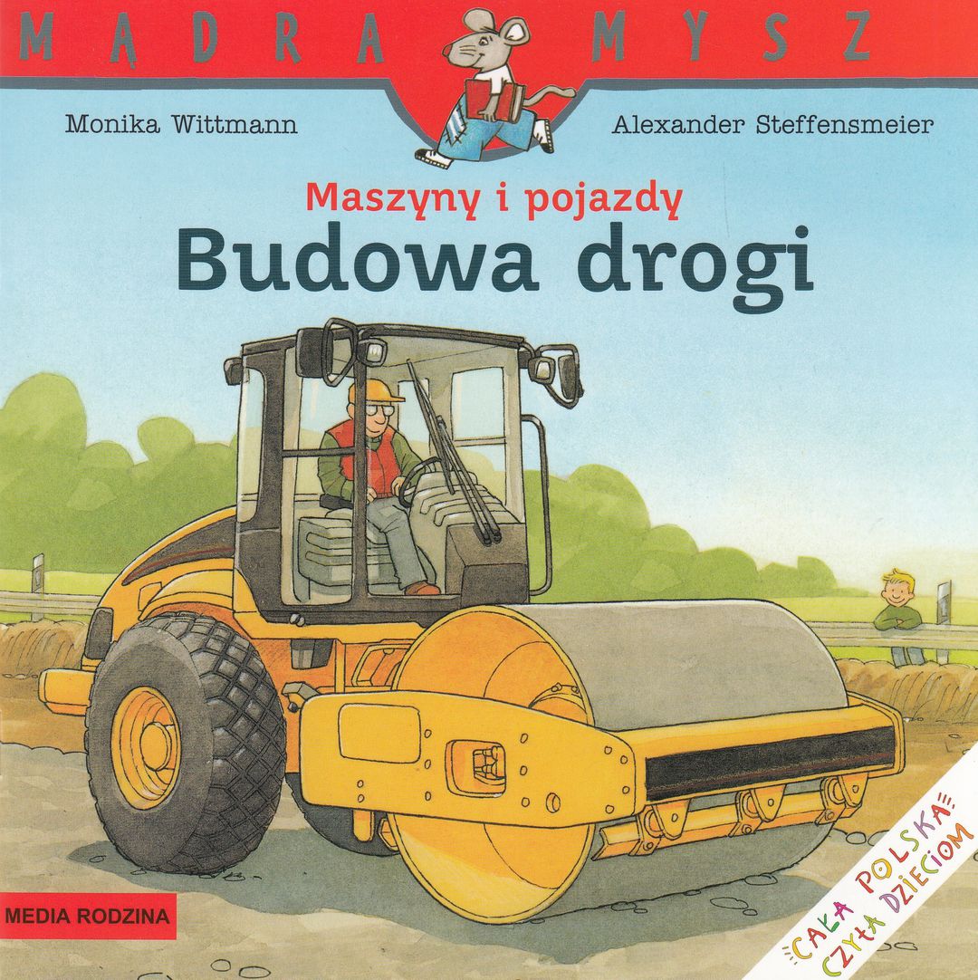 Właśnie powstaje nowa droga. Na budowie Sławek przygląda się pracy wielkich maszyn i pojazdów: koparek, walców, spychaczy, rozściełacza mas bitumicznych, a nawet ogromnej wiertnicy!