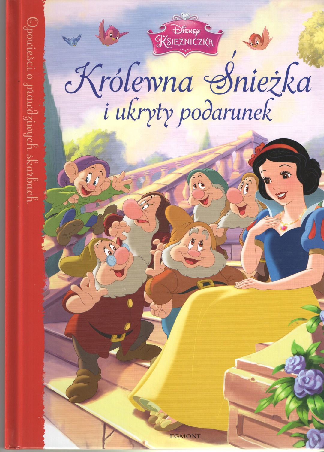 Książę wyrusza na wyprawę. Przed wyjazdem oznajmia żonie, że ma dla niej prezent, ale starannie ukryty. Aby odnaleźć podarunek, Śnieżka musi wpierw rozwiązać kilka zagadek. Królewnie, jak zwykle, pomagają oddani przyjaciele - krasnoludki. Czy wspólnymi siłami uda im się odszukać upominek? I co nim będzie? Seria "Opowieści o prawdziwych skarbach" pozwoli ci na co dzień cieszyć się towarzystwem Śnieżki, Kopciuszka, Aurory oraz innych baśniowych bohaterek. Znajdziesz tu odpowiedź na nurtujące wszystkich pytanie: co się działo za górami, za lasami po żyli długo i szczęśliwie? A także poznasz dotąd nieznane szczegóły rodzącej się miłości między księżniczką a jej wybrankiem.