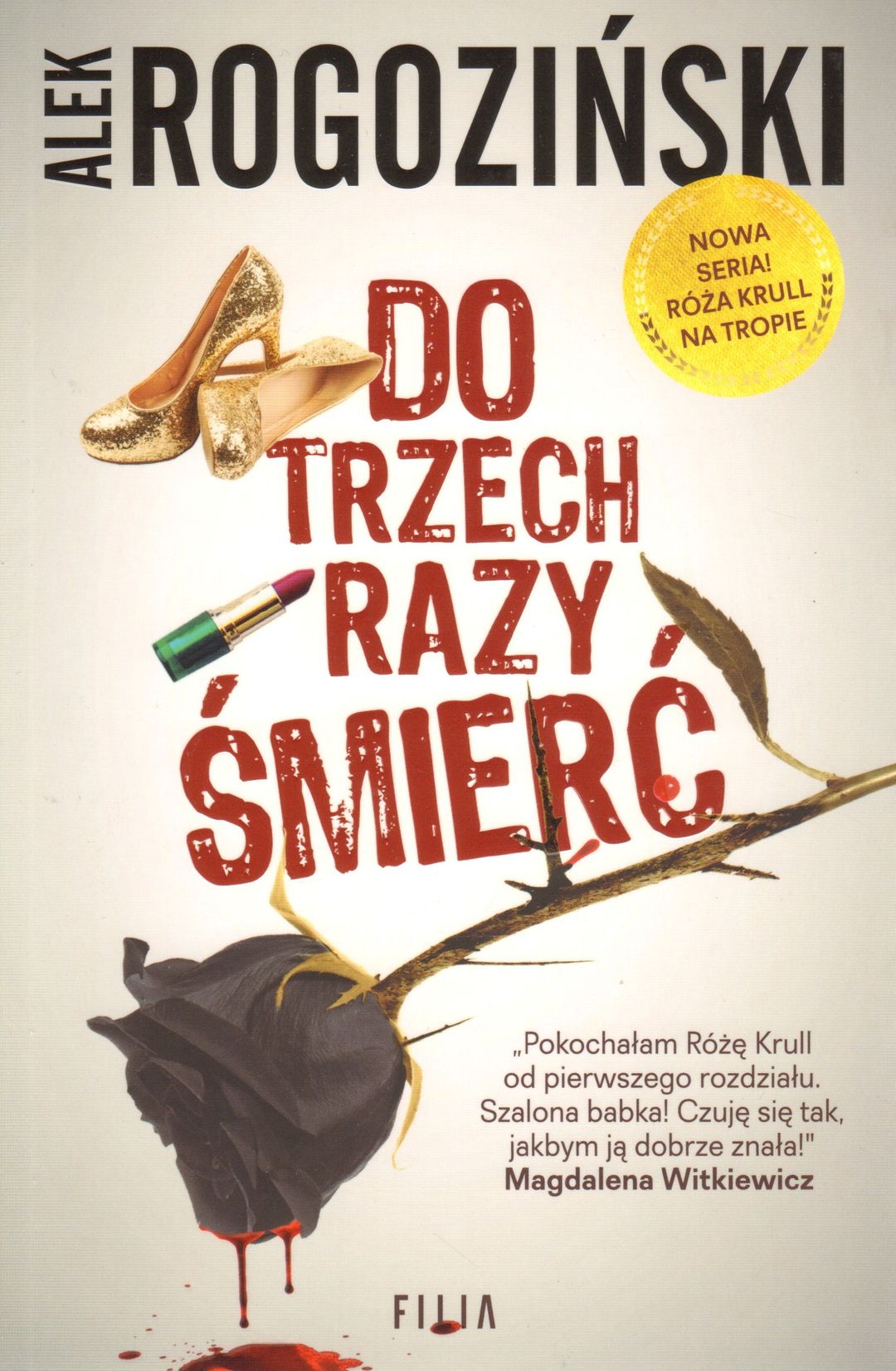 Tytuł: „Do trzech razy śmierć” Autor: Alek Rogoziński Wydawnictwo: Filia Cykl: Róża Krull na tropie Seria: Mroczna strona Projekt okładki: Olga Reszelska Korekta: Baltazar Wydanie: I Oprawa: miękka (ze skrzydełkami) Liczba stron: 322 Data wydania: luty 2017 (przybliżona data) ISBN: 978-83-8075-194-1 Źródło – skrzydło książki.